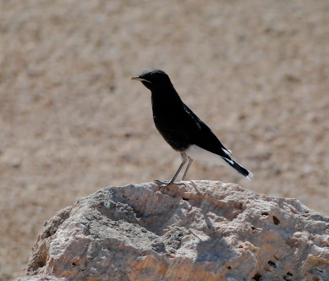 Collalba negra de Brehm (Oenanthe leucopyga) con ceba en Al Manssour.