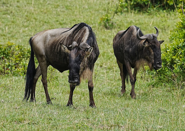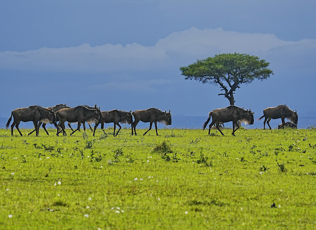 Os dejo ahora una serie de imágenes, con una luz de las últimas horas de la tarde, mucho más fotogénica, del mamífero más abundante, el ñu. Debe de ser una fuente inagotable de proteínas para los leones y leopardos. Junto con el guepardo era uno de los mamíferos que más ganas tenía de ver en Kenya, a pesar de no ser especialmente agraciado. Me gustó especialmente la última imagen, bajo un cielo amenazador. Sobran los comentarios.